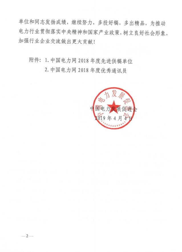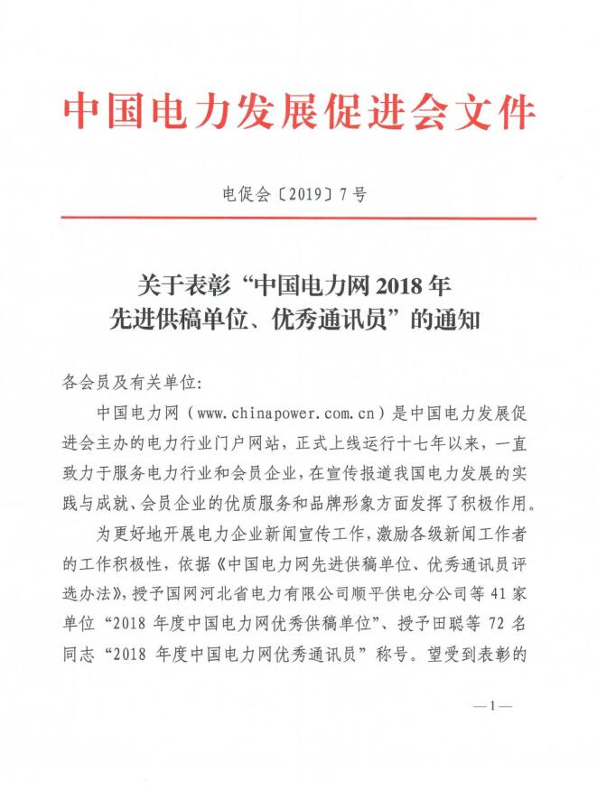 關(guān)于表彰“中國電力網(wǎng)2018年先進(jìn)供稿單位、優(yōu)秀通訊員”的通知