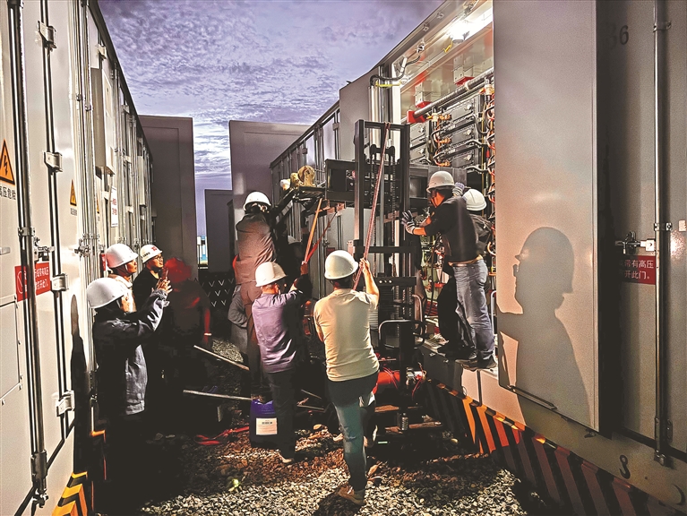 “這項紀錄的誕生,得益于高壓直掛儲能技術極大地簡化了大型儲能電站的構建方案。”郝卓龍算了一筆賬,建設一座150兆瓦/600兆瓦時儲能電站,如采用低壓儲能技術,需85—800臺功率逆變設備進行并聯(lián),不僅系統(tǒng)復雜程度高,且存在低頻或寬頻振蕩風險。要達到同樣容量,只需要6套采用高壓直掛儲能技術的設備,建設速度自然較快。