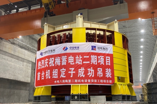 11月8日,梅蓄電站二期項目首臺(5號)機(jī)組定子吊裝完成,為2025年首臺機(jī)投產(chǎn)發(fā)電奠定了堅實基礎(chǔ)。