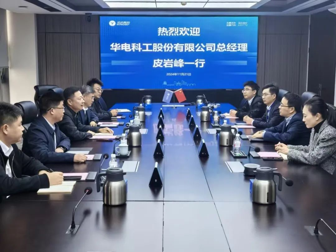 陳棋對皮巖峰一行的來訪表示熱烈歡迎,并重點介紹了運達(dá)股份在風(fēng)電整機(jī)裝備制造、清潔能源開發(fā)運營、新能源工程總承包、儲能系統(tǒng)產(chǎn)品、智慧能源服務(wù)等領(lǐng)域發(fā)展情況及未來規(guī)劃。他表示,運達(dá)股份與華電科工股份有限公司在科技創(chuàng)新、戰(zhàn)新產(chǎn)業(yè)發(fā)展上高度契合,并對公司在海上風(fēng)電建設(shè)、氫能及醇氨業(yè)務(wù)發(fā)展等方面取得的成績給予了高度評價,期望雙方加強(qiáng)溝通交流,發(fā)揮各自優(yōu)勢,形成戰(zhàn)略合作,實現(xiàn)合作共贏。