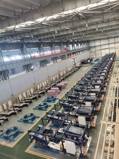 在大規(guī)模生產(chǎn)工作中,有效拓寬生產(chǎn)空間、采用精細化車間定置管理將極大提升生產(chǎn)效率。生產(chǎn)團隊根據(jù)物資到貨情況及生產(chǎn)進程,合理規(guī)劃空間布局,提高空間利用率的同時兼顧后續(xù)工序便利性。充分利用外場地及庫房空間,巧思布置,使得大批量存放半成品機組得以實現(xiàn)。整齊劃一的機組,形成了華銳風(fēng)電一道最美的風(fēng)景線。