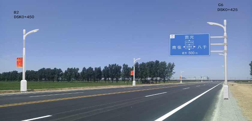 今年在雄安容(容城)易(易縣)線投入應用,搭載了通信基站、視頻監(jiān)控、氣象監(jiān)測、公關WLAN、信號燈、高清卡口等設施。
