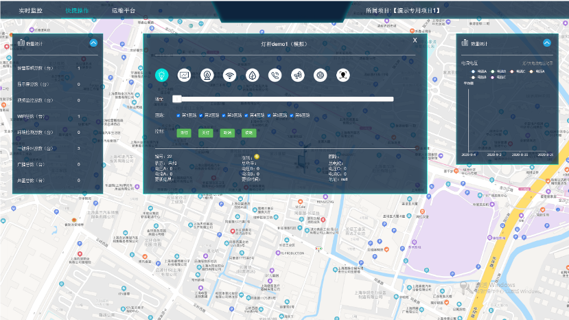 自主研發(fā)的智慧路燈物聯(lián)應用管理平臺,可成功接入LED照明、LED顯示屏、監(jiān)控攝像頭、行為監(jiān)測儀、環(huán)境監(jiān)測器、井蓋監(jiān)測器、垃圾監(jiān)測器、一鍵報警器、WIFI等九類智能設備,實現(xiàn)集中化的用能數(shù)據(jù)采集、狀態(tài)信息查詢、遠程開關控制、業(yè)務指令發(fā)布、設備信息維護、異常情況預警等系統(tǒng)管理,極大提升管理者的管理效率。