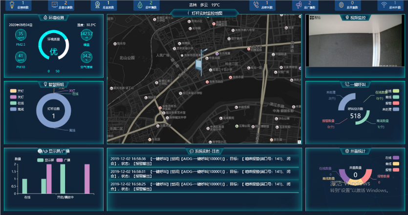 平臺根據(jù)不同智能設備的業(yè)務屬性,采用模塊化、自定義的形式將其進行業(yè)務數(shù)據(jù)可視化處理。所有可視化數(shù)據(jù)均為前端采集數(shù)據(jù)的實時更新,既可根據(jù)運營方的業(yè)務需求定制集成界面展示內容,也可支持擴展更多的業(yè)務模塊。