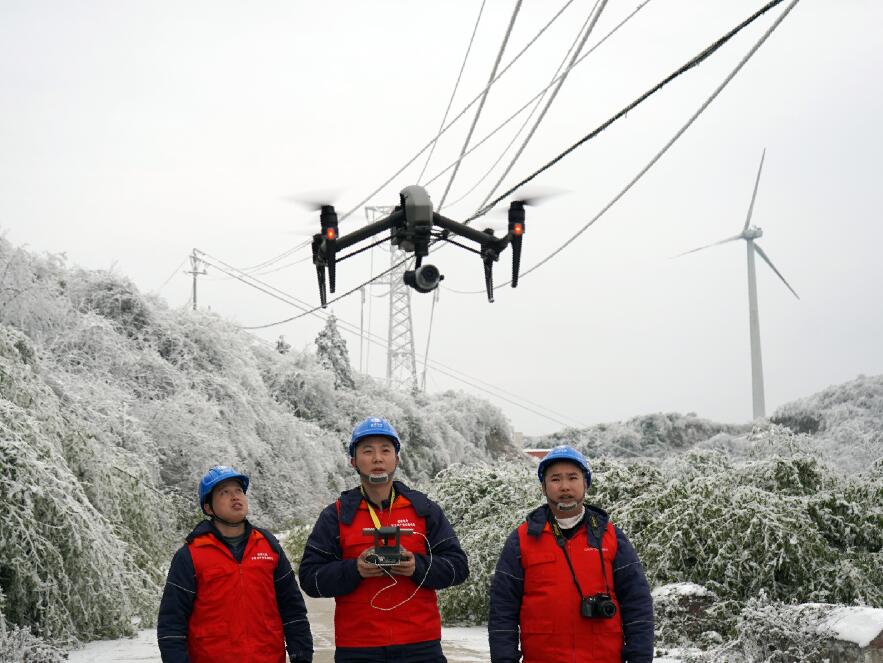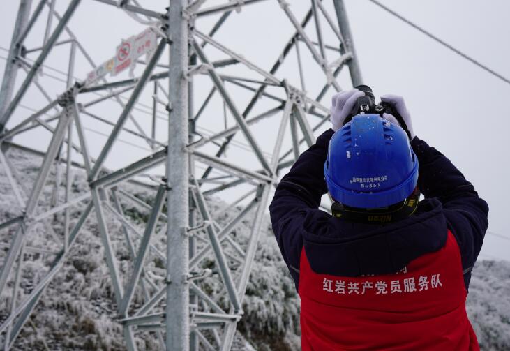 中國(guó)電力網(wǎng)訊 “110千伏四黎線(xiàn)今日最大覆冰厚度7.9毫米,目前風(fēng)速3.5米每秒,溫度零下4度……”“小心一點(diǎn),要走兩邊有草叢的地方,中間的道路結(jié)冰了,容易滑倒。”1月9日,國(guó)網(wǎng)重慶武隆供電公司輸電運(yùn)維檢修班成員吳鼎、趙樓等人來(lái)到武隆區(qū)和順鎮(zhèn)四眼坪鄉(xiāng)對(duì)覆冰線(xiàn)路開(kāi)展特殊巡視。在白雪皚皚的四眼坪,國(guó)家電網(wǎng)紅巖共產(chǎn)黨員服務(wù)隊(duì)隊(duì)服的顏色成了冰雪世界里最靚麗的一抹紅,他們手拿著無(wú)人機(jī)、砍刀、繩索、望遠(yuǎn)鏡、風(fēng)速儀等設(shè)備再一次踏入他們熟悉的“冰雪戰(zhàn)場(chǎng)”。