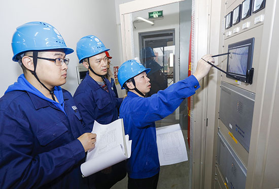 據(jù)了解,110千伏會(huì)展變是寧波范圍內(nèi)首個(gè)加裝中性點(diǎn)柔性接地電壓消弧裝置的變電站。這套全新的消弧裝置由控制屏、戶外組合柜和電壓源三部分組成。驗(yàn)收現(xiàn)場(chǎng),國(guó)網(wǎng)寧波市鄞州區(qū)供電公司員工按動(dòng)鍵面,熟悉操作,查看各項(xiàng)數(shù)值。