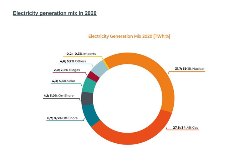除了擴(kuò)大可再生能源發(fā)電能力外,2020年電力標(biāo)志是核能發(fā)電量下降,滿足了比利時39.1%的電力需求,燃?xì)獍l(fā)電廠電量趨于穩(wěn)定,以及電力進(jìn)出口之間接近平衡。