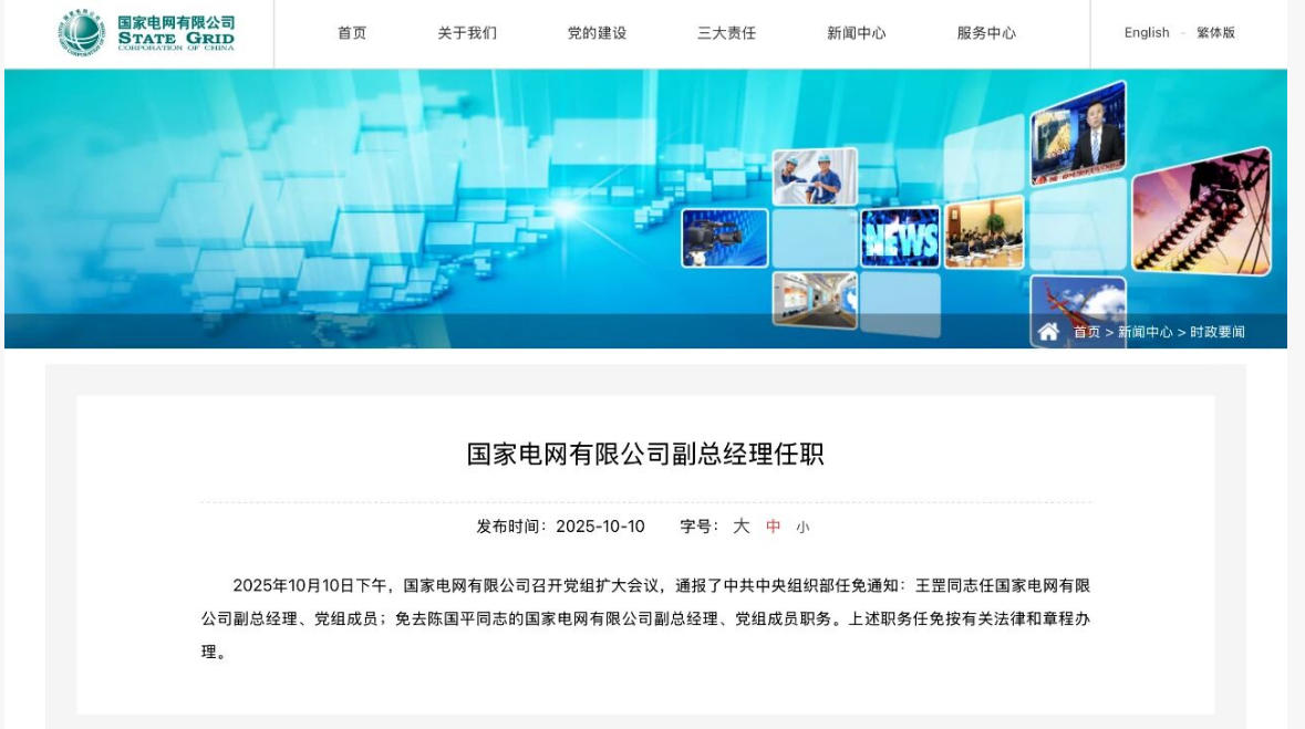 2025年10月10日下午,國家電網(wǎng)有限公司召開黨組擴(kuò)大會(huì)議,通報(bào)了中共中央組織部任免通知: