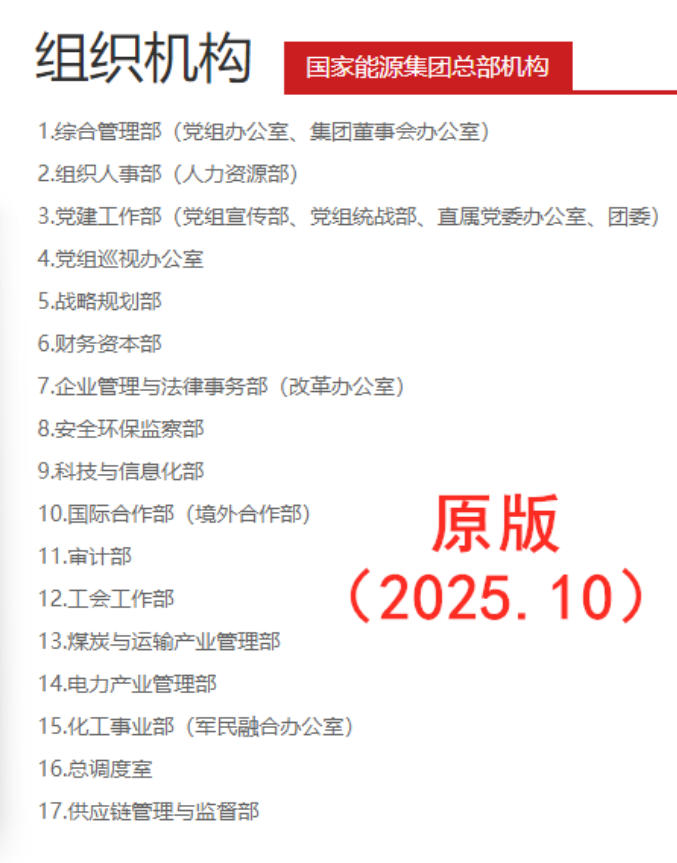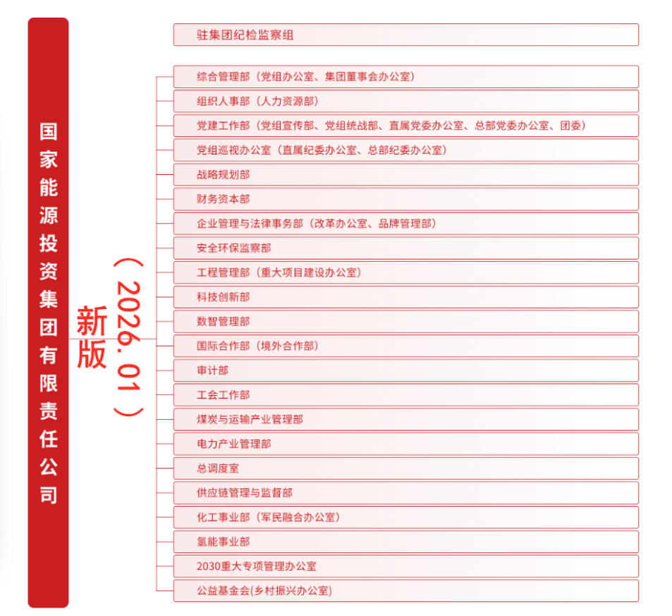 日前,國家能源集團官網(wǎng)改版并更新“組織架構(gòu)”信息。