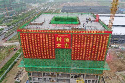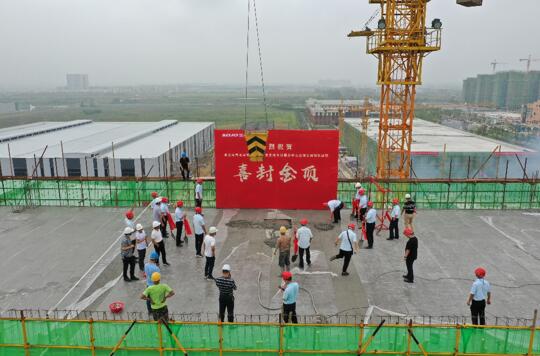 為了確保施工進(jìn)度,總包方充分利用空閑時間,全員加班加點(diǎn),在確保質(zhì)量的同時與時間賽跑,最終如期完成生活服務(wù)中心及綜合樓中--九層辦公樓的土建工作,并于7月9日9時9分舉行了封頂儀式。