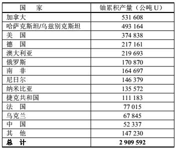 本數(shù)據(jù)是世界核能協(xié)會(WNA)于 2019年8月份提供的從鈾礦生產(chǎn)(公噸U)的數(shù)據(jù)。
