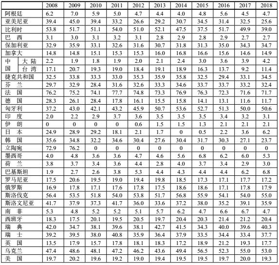 核能發(fā)電在世界各國電力中的份額(%)