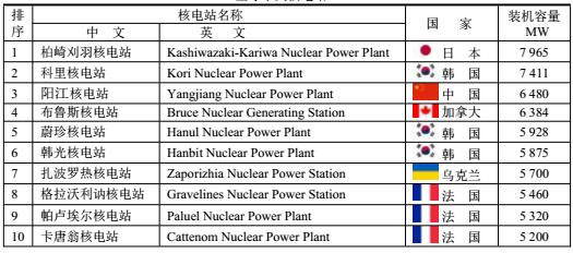 世界上最大的核電站是日本柏崎刈羽核電站,裝機(jī)容量為7965MW,但2011年已經(jīng)停工。值得注意的是韓國核電站進(jìn)展很快,前十位核電站就占有4席,把美國和日本都摔到后面。