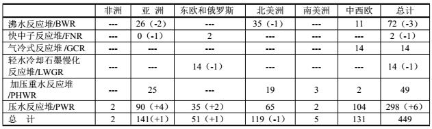2018年底全球運(yùn)行的反應(yīng)堆有449座,壓水反應(yīng)堆(PWR)最多,占總量的298/449=66%;其次為沸水反應(yīng)堆(BWR)。